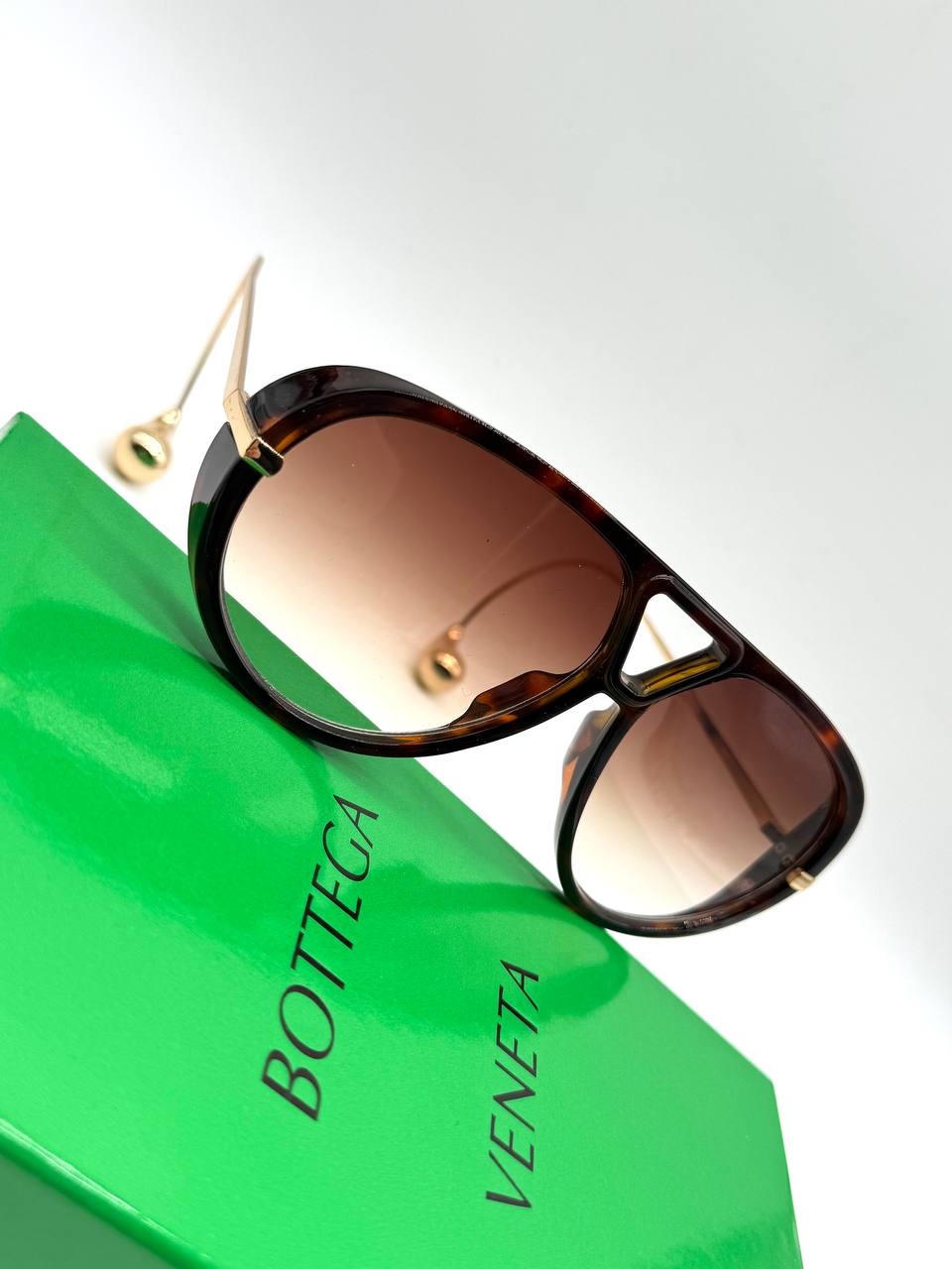bottega veneta γυαλια ηλιου, ακρυλικος σκελετος, μεταλλικο χρυσο μπρατσο, χαραγμενο λογοτυπο ,λεπτομερεια στο μπρατσο