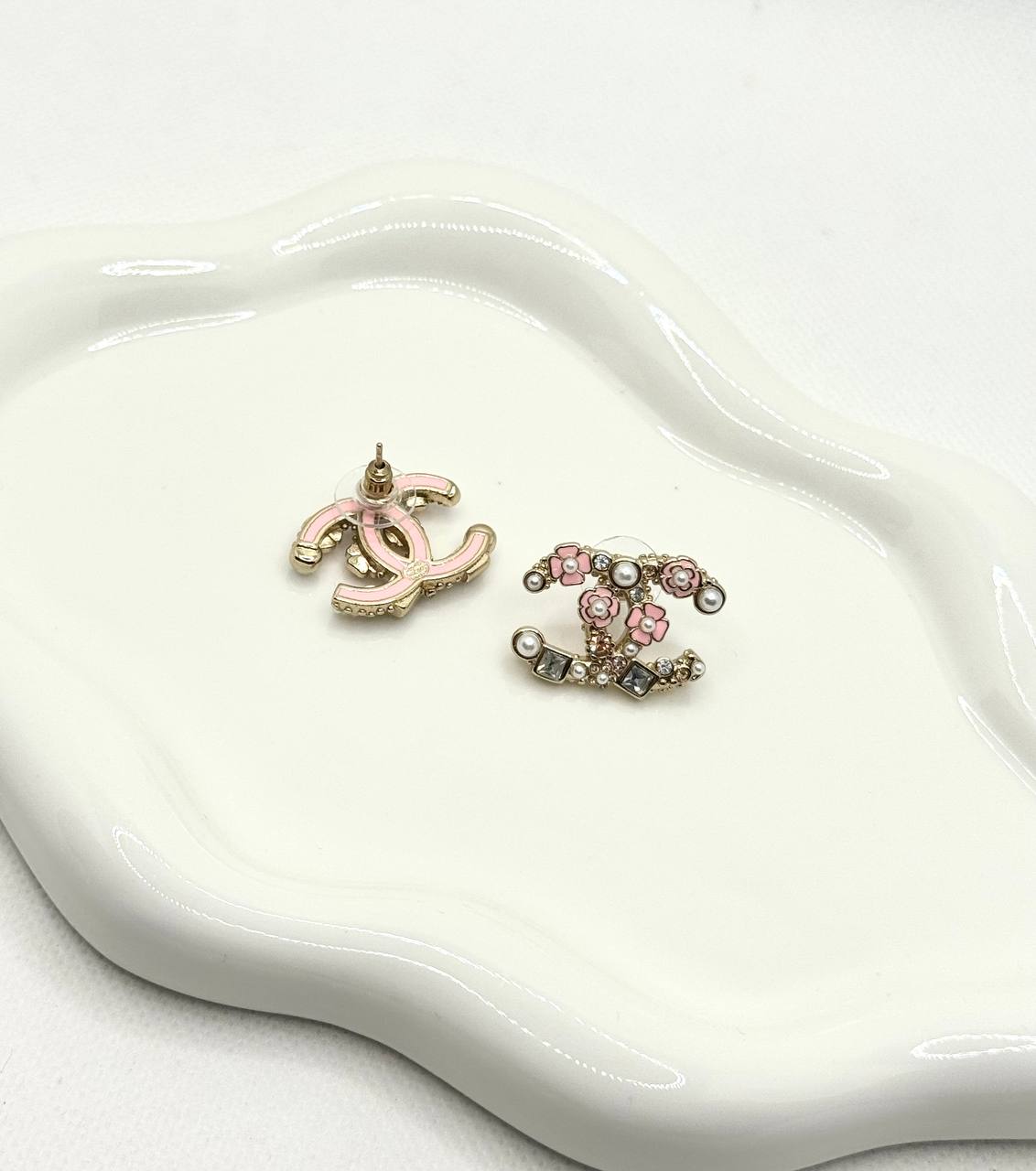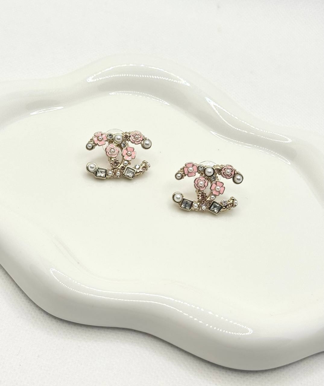Καρφωτα σκουλαρικια με swarovski,περλιτσες και ακρυλικα ροζ λουλουδια ατσαλι 316L