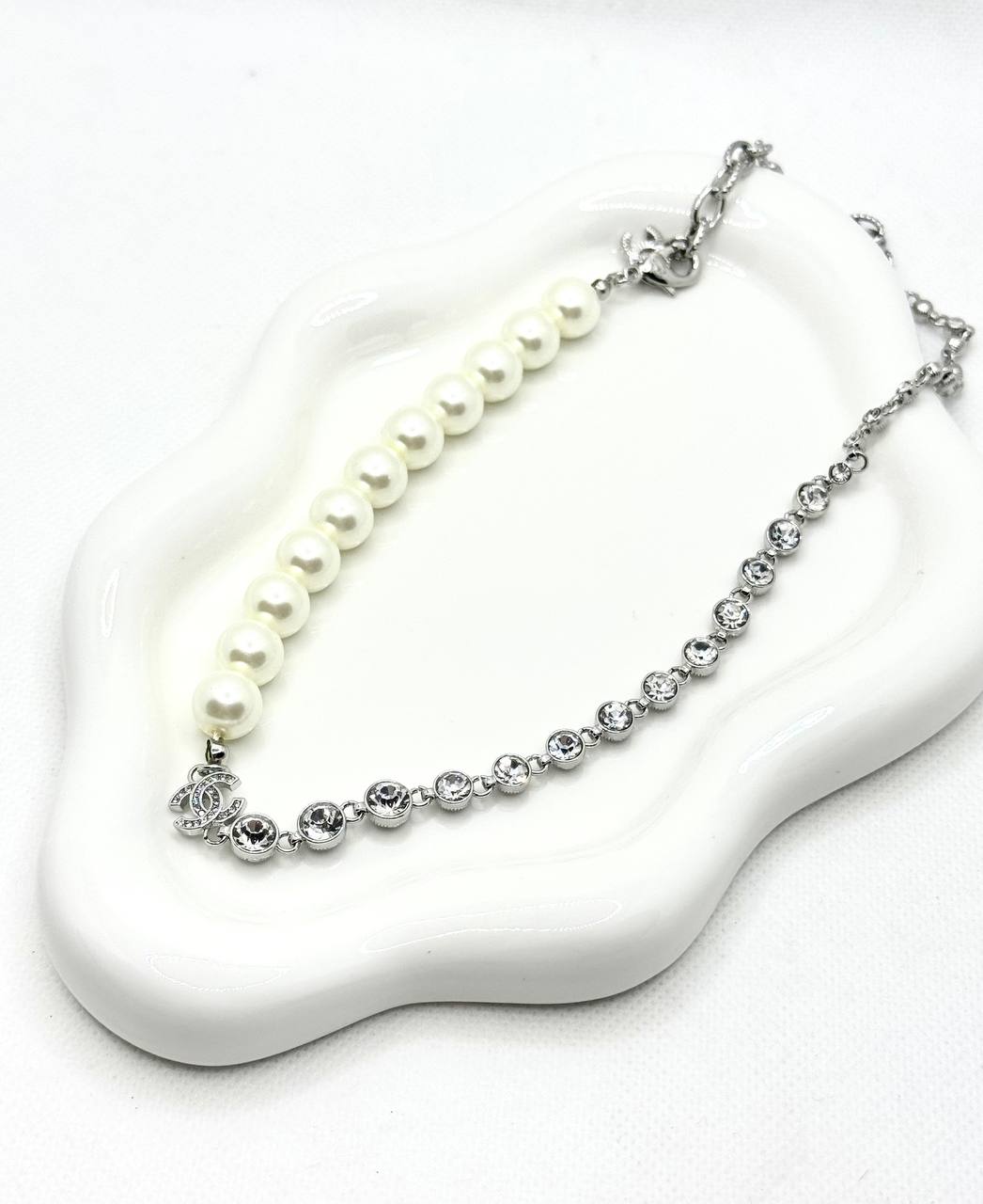 Κολιε με περλες και swarovski ατσαλι 316L
