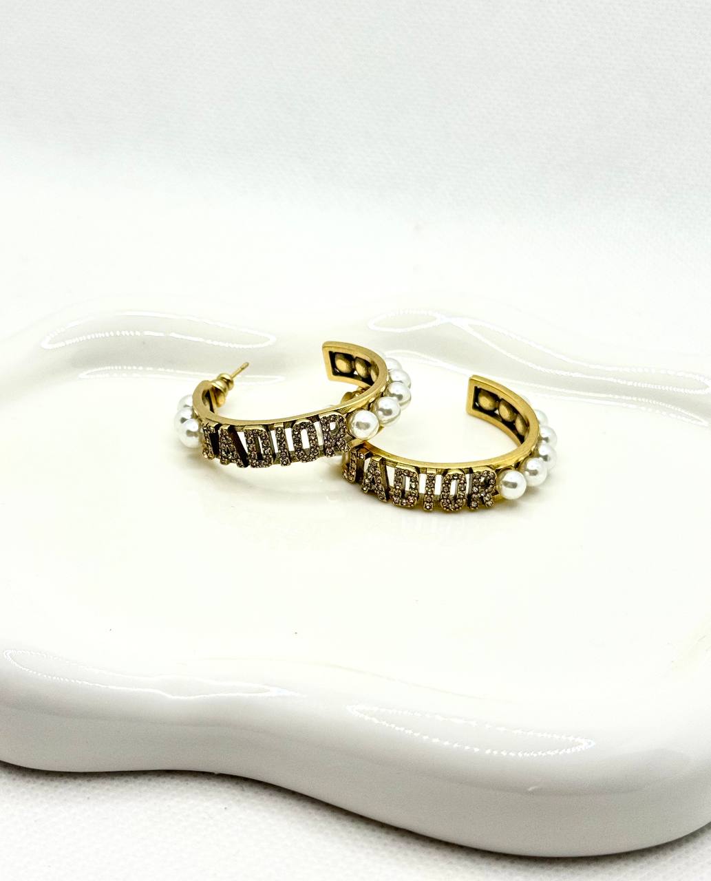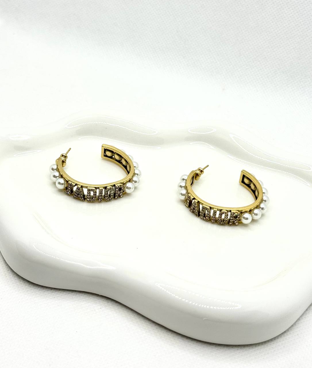DIOR σκουλαρικια κρικοι με περλες και swarovski ατσαλι 316L