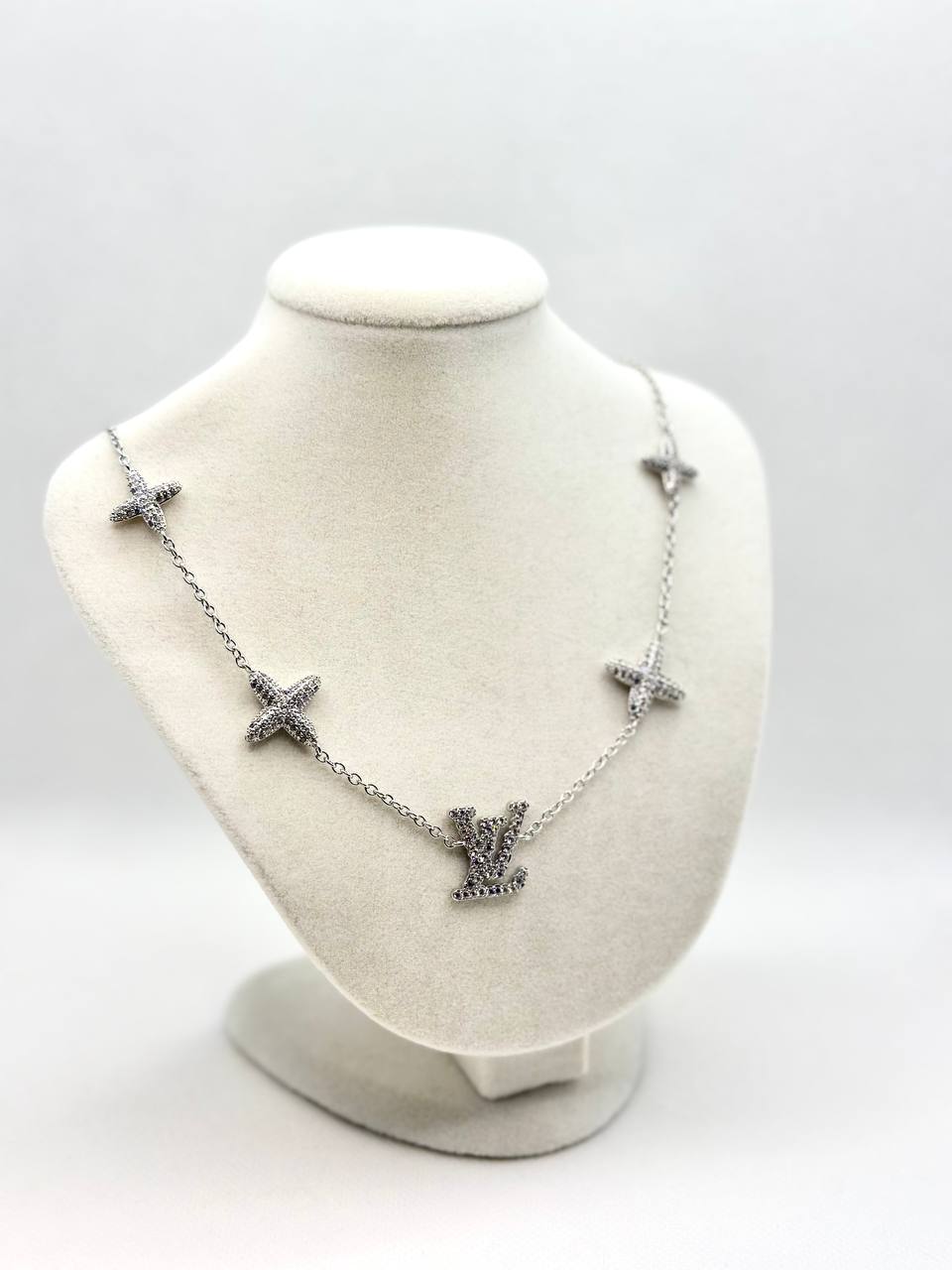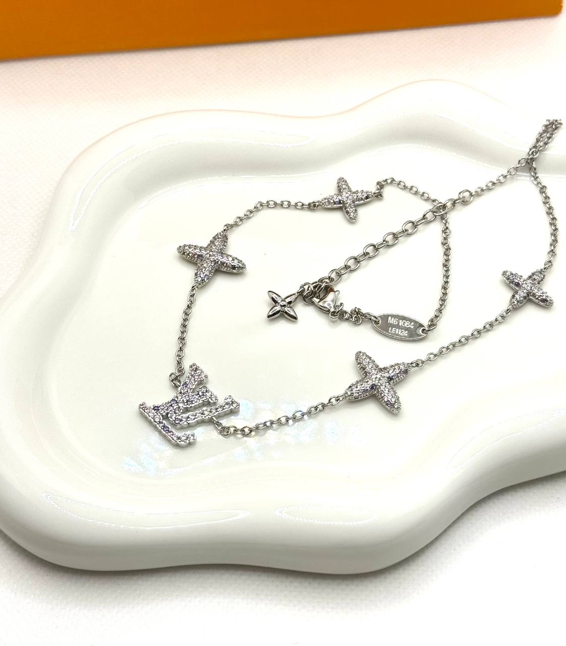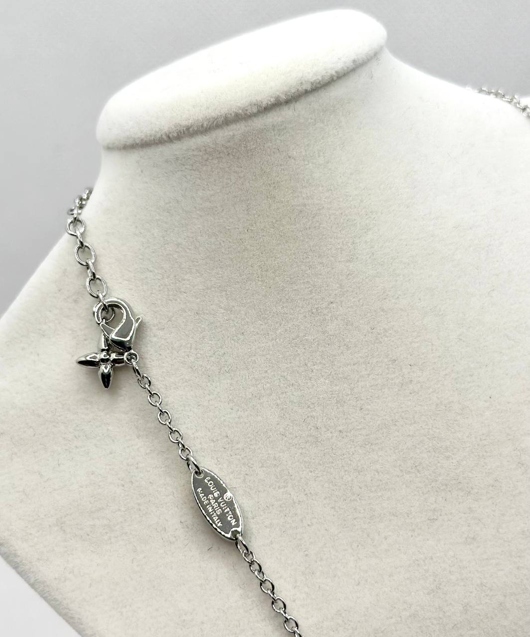 Louis Vuitton κολιε αλυσιδα ατσαλι 316L με λευκα, ροζ και λιλα ζιργκον