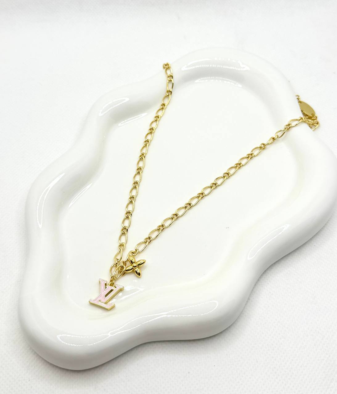 Louis Vuitton κολιε αλυσιδα με ροζ φιλντισι στο μονογραμμα ατσαλι 316L