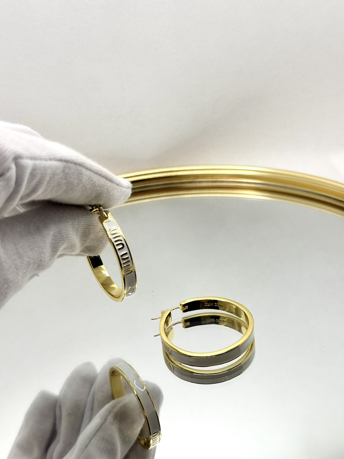 MIU MIU σκουλαρικια κρικοι με λευκο φιλντισι ατσαλι 316L