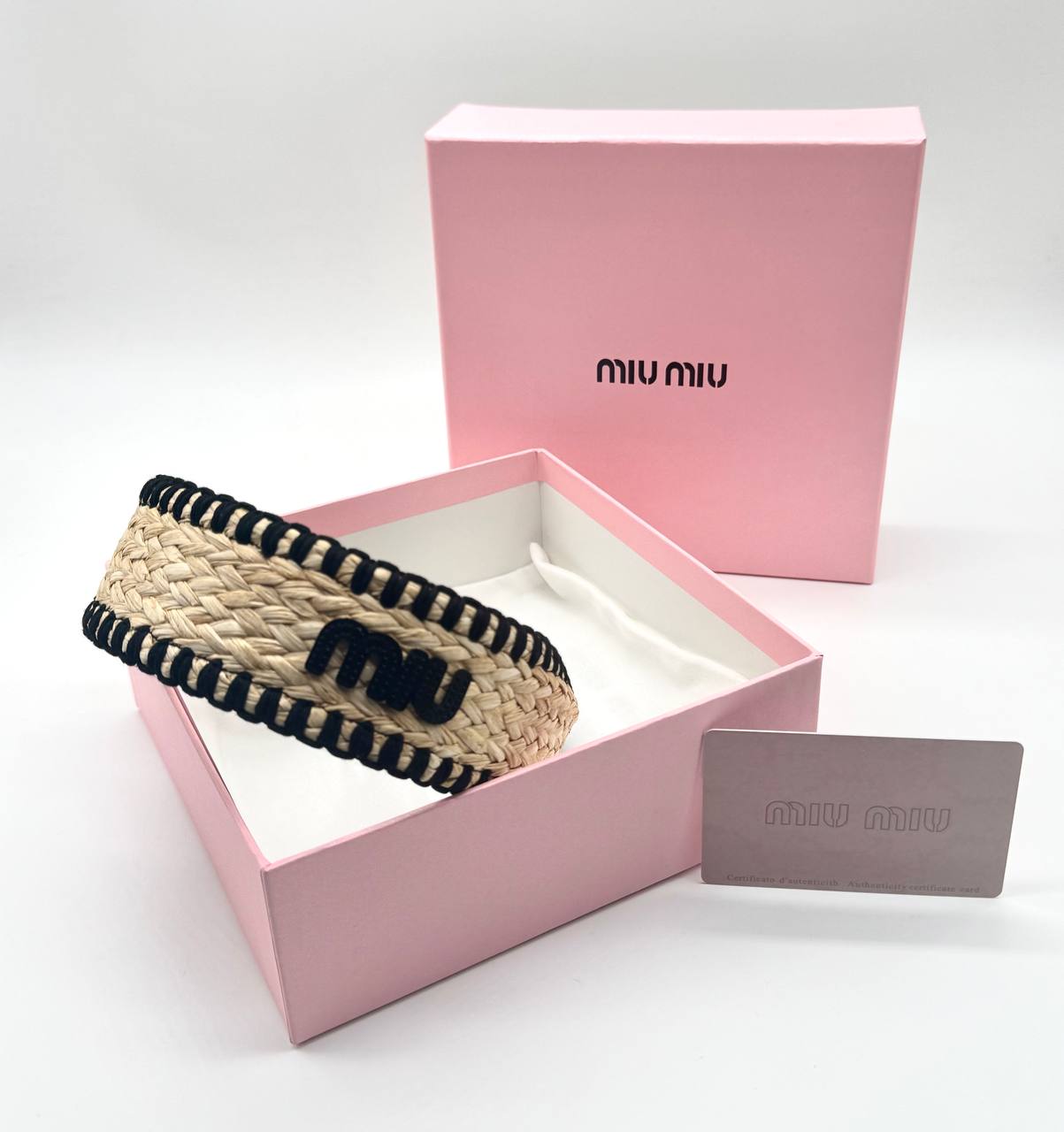 Miu Miu στεκα μαλλιων ψαθινη με λογοτυπο απο τεχνοδερμα