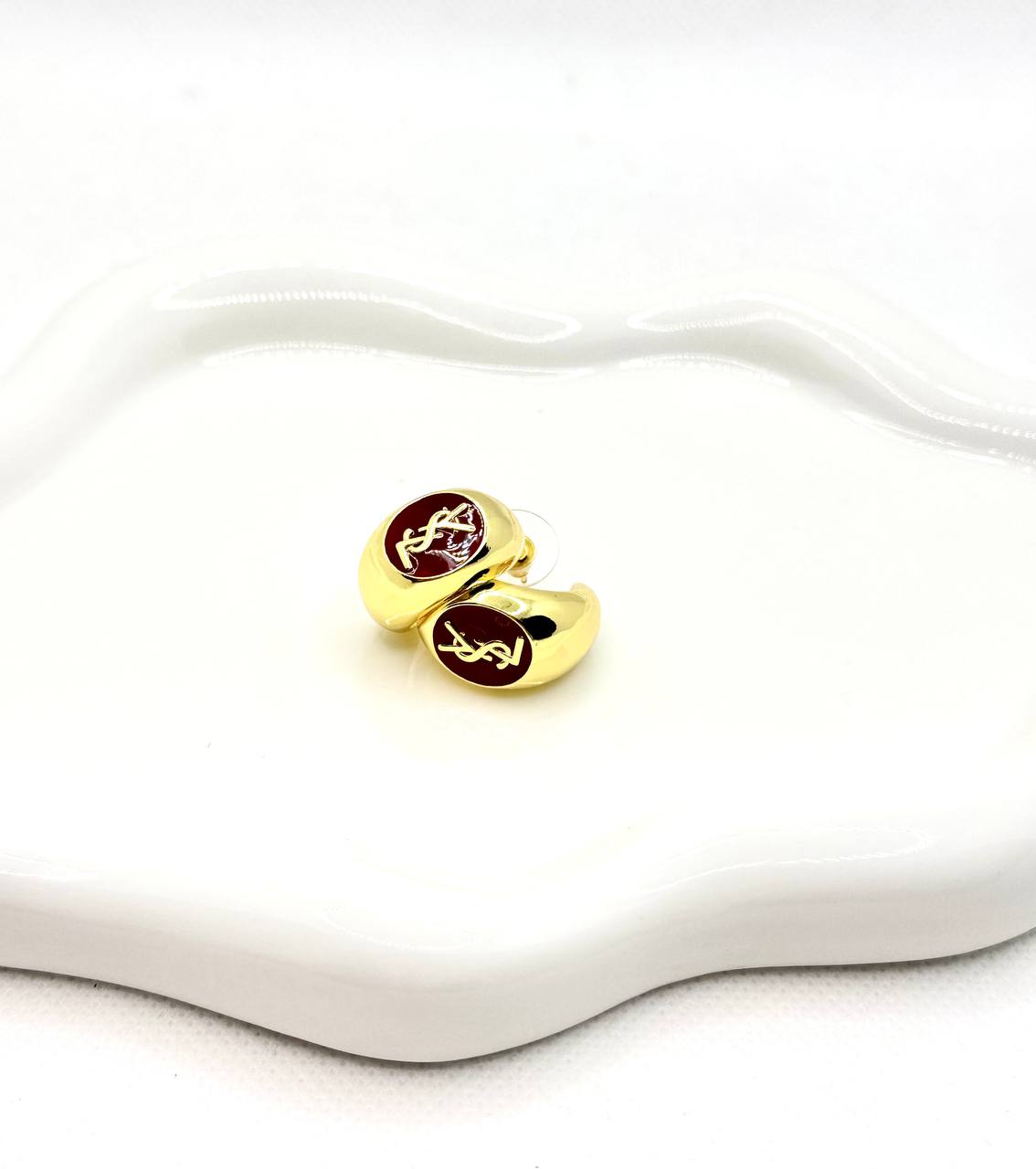 YSL κρικοι σκουλαρικια με μπορντο φιλντισι ατσαλι 316L