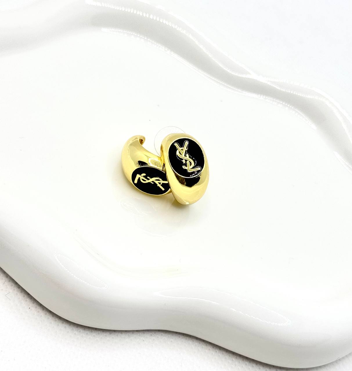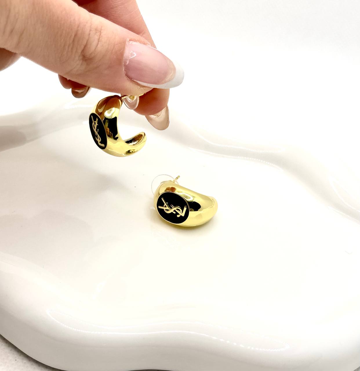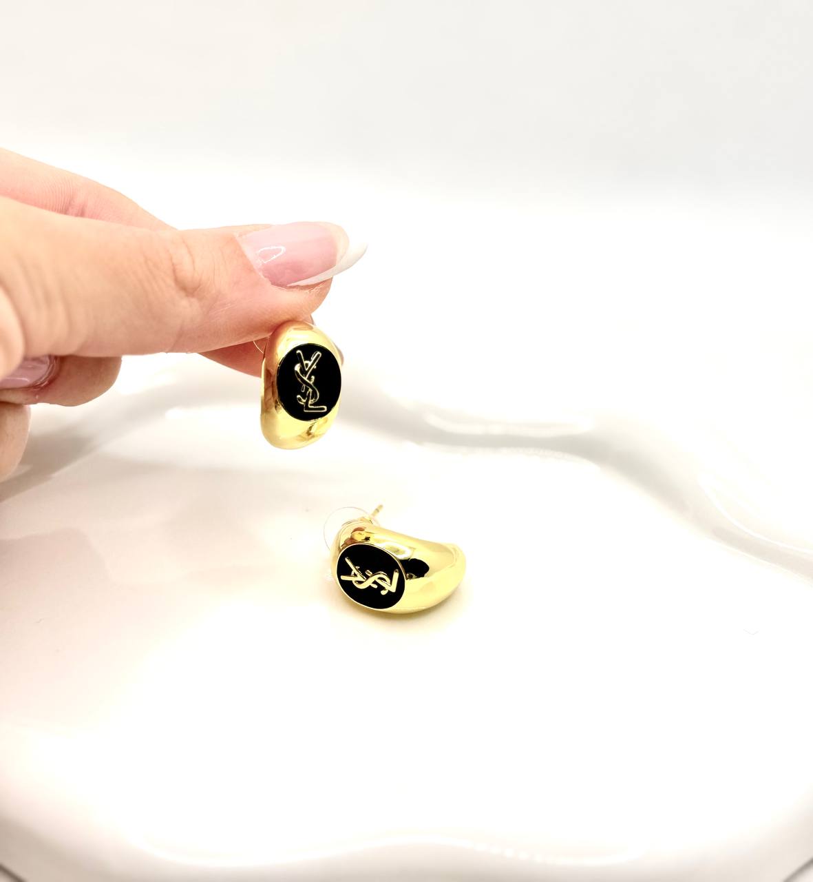 YSL κρικοι σκουλαρικια με μαυρο φιλντισι ατσαλι 316L